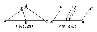 14.(2009年内蒙古呼和浩特市)在等腰△ABC中,AB=AC,一边上的中线BD将这个三角形的周长分为15或12两个部分,则该等腰三角形的底边长等于 .
