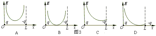 +q和-q的点电荷放在x轴上,+q放在x轴原点,-q放在x轴的L处,两者相距为L,能正确反映两电荷连线上场强大小E与x关系的是图3中的( )