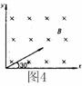 如图4所示,在第一象限内有垂直纸面向里的匀强磁场,一对正、负电子分别以相同速度沿与x轴成30o角从原点射入磁场,则正、负电子在磁场中运动时间之比为( )![]()