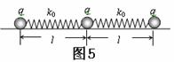 如图5所示,在光滑绝缘水平面上放置3个电荷量均为q(q>0)的相同小球,小球之间用劲度系数均为k0的轻质弹簧绝缘连接。当3个小球处在静止状态时,每根弹簧长度为l,已知静电力常量为