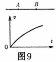 10.如图9AB是某电场中的一条电场线,若将正点电荷从A点自由释放,沿电场线从A到B运动过程中的速度图线如下图所示,则A、B两点场强大小和电势高低关系是( )![]()