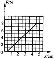 在研究弹簧形变与外力关系的实验中,将弹簧水平放置而测出其自然长度,然后竖直悬挂而让其自然下垂,在其下端竖直向下施加外力F,实验过程是在弹簧的弹性限度内进行的。用记录的外力F与弹簧的形变量x作出F – x图线如右,由图可知弹簧的劲度系数k = ,图线不过坐标原点的原因是 。