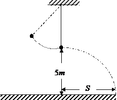 (2)线被拉断后,球落于悬点正下方5m的水平面上的位置