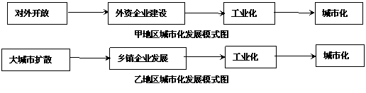 A 甲地区属于外资驱动型城市化 B 乙地区属于开发区驱动型城市化