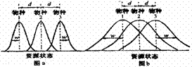 5.下图表示3个共存物种的资源利用曲线,图a和图b中3个物种的资源利用状况不同,下面是对图a中3个物种与图b中3个物种相比较的几种说法,正确的是 :