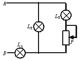 21.如图所示,A、B间电压恒定,三只灯泡亮度相同,设它们的电阻分别为R1、R2、R3,则下列判断正确的是( )