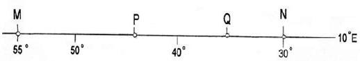 61.下图所示为世界地图上的一段经线。MP、QN为陆地,PQ为海洋。(20分)