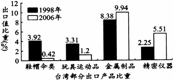 15.台湾部分产品出口比重下降,说明其在竞争中丧失了