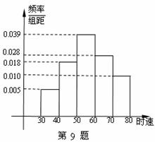 9.200辆汽车经过某一雷达地区,时速频率分布直方图如图所示,则时速超过70km/h的汽车数量为( )