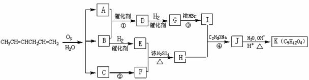 现以CH3CH=CHCH2CH=CH2为原料来合成有机物K,合成路线如下: