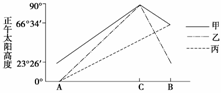 (3)下图中甲、乙、丙三条线表示该半球当日正午太阳高度的分布规律,其中正确的是 线。