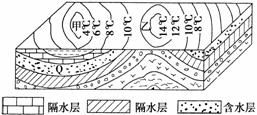 13.乙图中的泉,涌水量最大的季节最可能是 ( )