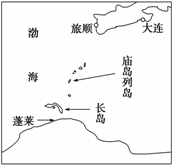 材料二 蓬莱-旅顺中间有庙岛列岛一线摆开,平均水深25米。(见下图)