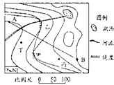 右图为某山地的局部等高线图,等高距为20米, AB为空中索道。回答4-5题。![]()