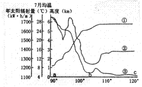 A.①-地势,②-年太阳辐射量,③-7月均温