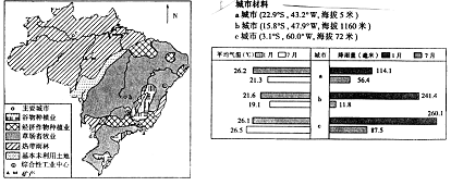 28.某国面积为854.7万平方千米,海岸线长7400多千米。结合该国土地利用图和主要城市的相关材料,分析回答下列问题。(17分)