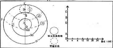 (2)若此时F点地方为6时,在图中画出DAGBC线此日的昼长变化折线图。(4分)