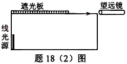 如图,置于空气中的一不透明容器中盛满某种透明液体。容器底部靠近器壁处有一竖直放置的6.0cm长的线光源。靠近线光源一侧的液面上盖有一遮光板,另一侧有一水平放置的与液面等高的望远镜,用来观察线光源。开始时通过望远镜不能看到线光源的任何一部分。将一光源沿容器底向望远镜一侧平移至某处时,通过望远镜刚好可能看到线光源底端。再将线光源沿同一方向移动8.0cm,刚好可以看到其顶端。求此液体的折射率n。