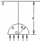 一束截面为圆形(半径为R)的平行单色光正面射向一玻璃半球的平面,如图所示,经折射后在屏S上形成一圆形光斑。已知入射光的波长为λ、功率为P,玻璃半球的半径为R,折射率为n,屏S