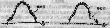 11.下图是修建山区公路前后的两幅剖面示意图。读图,回答问题。