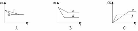 (3)若图C中e、f表示不同压强时的情形,则曲线 表示压强较大时的情形,方程式中A、B两种物质的系数m、n分别为 、 。