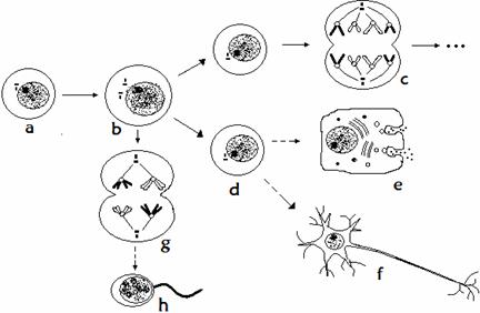 (6分)(实验班学生不做)下图简单表示一哺乳动物体内细胞的某些生命活动。请据图回答一组相关问题。