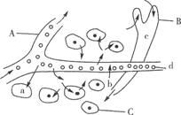 (4)a-d之间既彼此分离,又相互联系。a和b之间隔以       ,b和d之间隔以        ,b和C之间隔以       ,b的来源有        ,b的去向有