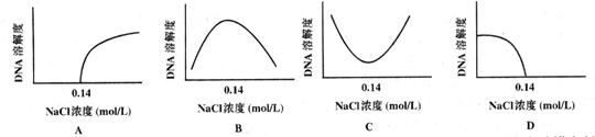 3.下列图示中能反映DNA溶解度与NaCl 溶液浓度之间关系的是