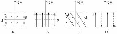 13.如图所示,虚线间空间存在由匀强电场E和匀强磁场B组成的正交或平行的电场和磁场(实线为电场线),有一个带正电小球(电量为+q,质量为m)从正交或平行的电磁混合场上方的某一高度自由落下,那么,带电小球可能沿直线通过下列的哪些电磁混合场