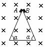 15.如图,匀强磁场垂直纸面向里,有一足够长的等腰三角形绝缘滑槽,斜槽两侧与水平面夹角为α,在斜槽顶点两侧各放一个质量相等、带等量负电荷的滑块A和B,两滑块与斜槽间的动摩擦因数相等,且μ<tanα,将两滑块同时由静止释放,则( )![]()