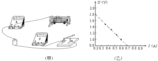 (2)说明闭合电键前,应使变阻器滑片处在________位置上。测得该电源的伏安特性曲线如图(乙)所示,则纵坐标表示的是该电路的____ __电压,![]()