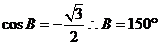 因为sinA≠0 ,所以cosB=- ,所以B=120o.