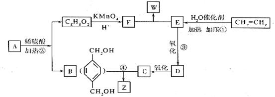 从A出发,发生图示中的一系列反应,其中B和C按1:2反应生成Z,F和E按1:2反应生成W,W和Z互为同分异构体。