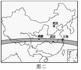 2009年7月22日上午9时左右(北京时间),千年一遇的日全食自西向东扫过我国长江流域(如图阴影所示)。读图完成5-6题