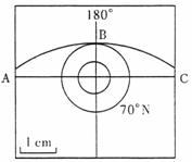 右下图表示全球处在同一日期时,曲线ABC上的太阳高度为0°,请读图后完成下列11-13小题。