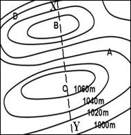 沿右上图中从X到Y方向所作的900hpa等压面剖面图,与下图中四幅等压面剖面图最接近的是