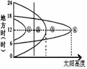 48.下图中四条曲线分别表示某日四个地点的太阳高度日变化过程,若某日处北半球夏半年,