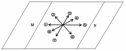 图中示意某一等高面。M、N为等压线,其气压值分别为PM、PN,M、N之间的气压梯度相同。①-⑧是只考虑水平受力,不计空气垂直运动时,O点空气运动的可能方向。