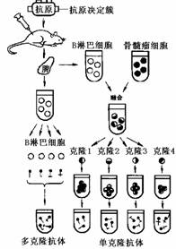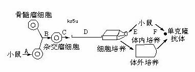 A.单克隆抗体 B.杂交瘤细胞C.产生特定抗体的B淋巴细胞 D.在单抗上连接抗癌药物