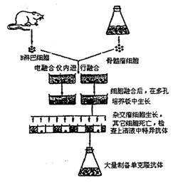 (06佛山一模)两场筹备了10年的“太空结合”首次在神舟八号飞船上举行了,“新人”之一是小白鼠B淋巴细胞和骨髓瘤细胞,新人在“产房”__电融合仪内孕育新生命。160min后,中国首批“太空娃娃”终于顺利诞生。“太空娃娃”诞生和地面实验如图所示。请回答下列问题: