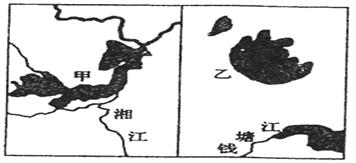 右图为我国两大淡水湖,据图判断并回答12-13题:
