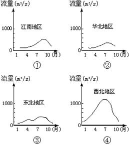 16.上右图是“我国四个地区河流流量过程线图”,其中正确的是( )