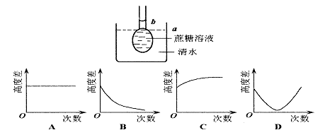 49.下图中的渗透装置,开始时的液面高度为a,停止上升时的高度为b,若每次停止上升后都将玻璃管中高出烧杯液面的部分吸出,则ab液面间的高度差与吸出蔗糖溶液的次数之间的关系是 ( )