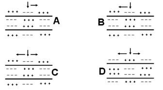 4.在一条离体的神经纤维中段施加电刺激(用指向下的箭头表示),使其兴奋,下图表示刺激后的膜内外电位变化和所产生的神经冲动传导方向(横向箭头表示传导方向),其中正确的是( )