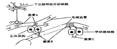 29.下图表示下丘脑神经分泌细胞、垂体细胞、甲状腺细胞及它们分泌的激素之间的关系,据图回答有关问题: