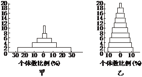 (3)调查甲、乙两草原所捕获鼠的月龄构成如图。据图分析, 草原的田鼠种群属于 型; 草原的田鼠种群属于 型,可以预测,该草原鼠害将会严重,必须作好防治准备工作。