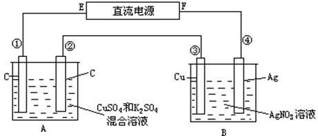 21.如图所示,通电5 min后,第③极增重2.16 g,同时在A池中收集到标准状况下的气体224 mL,设A池中原混合液的体积为200 mL,求通电前A池中原混合溶液Cu2+的浓度。