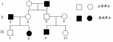 (4)若Ⅱ5和Ⅱ6均不患红绿色盲且染色体数正常,但Ⅲ9既是红绿色盲又是Klinefelter综合症(XXY)患者,其病因是Ⅱ代中的 号个体产生配子时,在减数第 次分裂过程中发生异常。