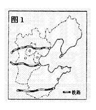 ( )15.图1中三条以运输煤炭为主的铁路线中,由北向南依次为