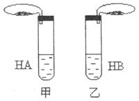 (4) 若将l0.00 mL 0.1 mol/L的HA、HB溶液换成l0.00 mL pH=1的HA、HB溶液,然后重做上述实验,反应结束后,气球较大的是 (填“甲”或“乙”),其理由是
